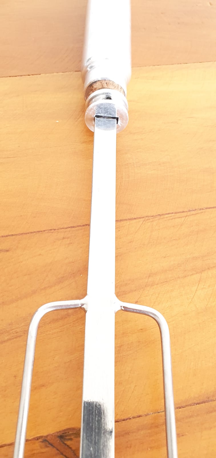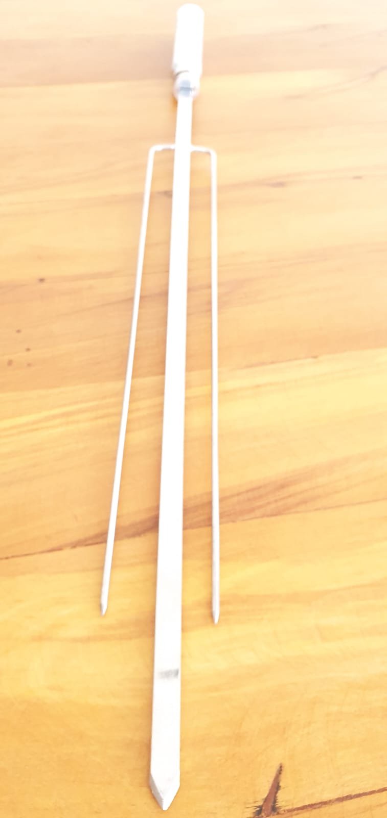 ESPETO TRIDENTE somente cabo em alumínio, comprimento total 72 cm, 3 mm de espessura e 2,23 cm de largura, com grampos laterais para dar maior robustez quando for assar carne com peças inteiras a exemplo de maminha, fraldinha, costela, etc.