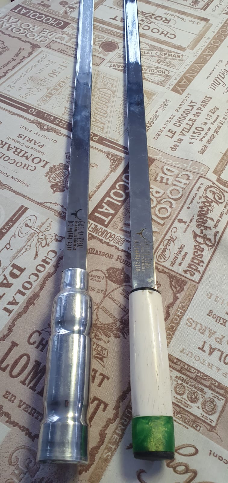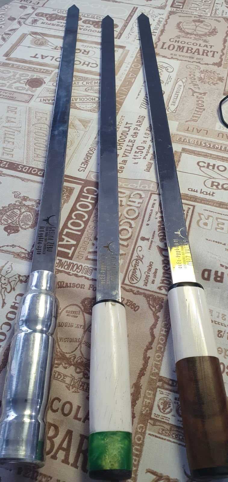 Pegador de Carne Zebu em aço inox 304 polido e brilhante, medindo 60cm de comprimento por 3,18mm de espessura.